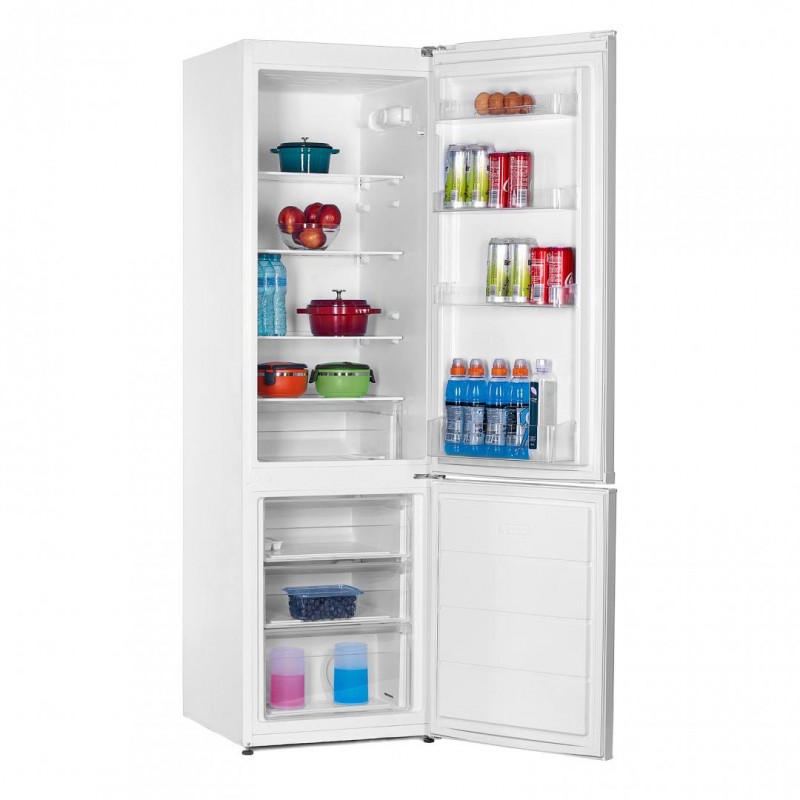 Heinner HC-V286F+ hladnjak, Energetski razred: F, Manje mraznog sustava hlađenja, Ukupni kapacitet: 288L, Kapacitet hladnjaka: 204L, Kapacitet zamrzivača: 84L, Mehaničko upravljanje s podesivim termostatom, LED svjetlo, funkcija “Super smrzavanja”, 3 staklene police hladnjaka, Odjeljak za voće i povrće, 3 ladice zamrzivača, Reverzibilna vrata, Držač jaja, Ladica za kocku leda, Kapacitet smrzavanja: 3,9 kg / 24h, Dimenzije (ŠxDxH): 54 x 59,5 x 180 cm, Bijela s kromiranim ukrasom ploče na ručki