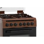 Kombinirani štednjak Heinner HFSC-V60LITGC-BRW, 50x60cm, 4 plamenika, držač cakline, stakleni poklopac, električna ploča za paljenje, ploča za sigurnosne uređaje, električna pećnica, 6 funkcija, tajmer, roštilj, ventilacija, odmrzavanje, svjetlo pećnice, dvostruko odvojiva staklena vrata pećnice, uključene mlaznice UNP-a, pladanj i kromirani roštilj, dimenzije (DxAxI): 50x60x85 cm, boja: smeđa
