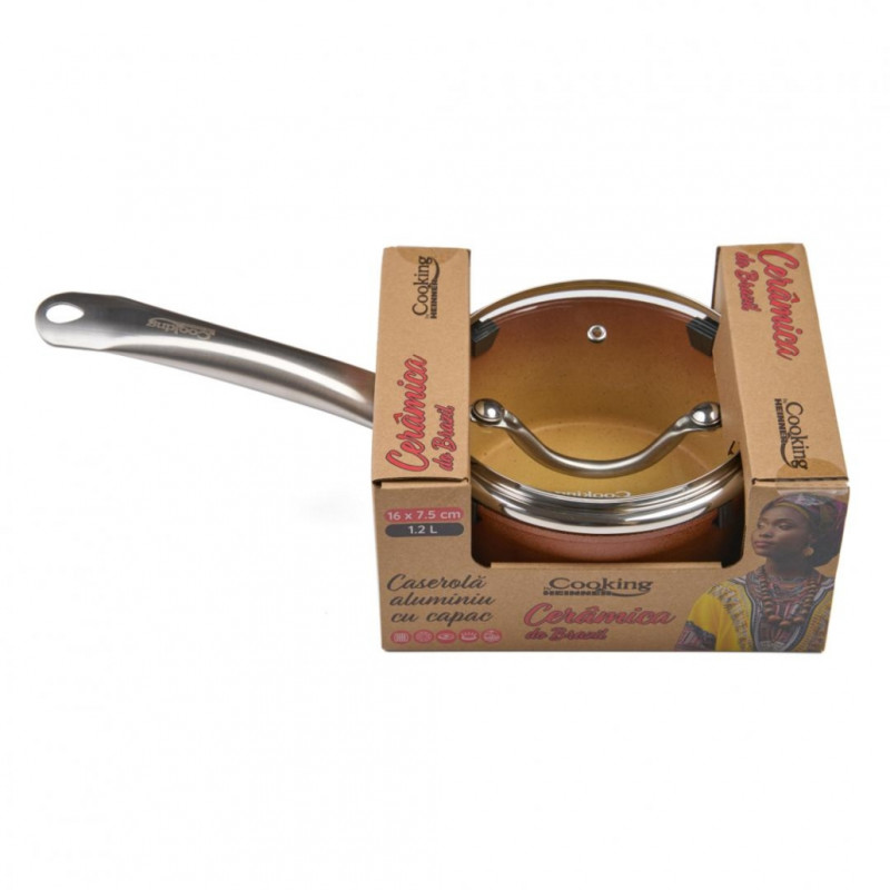 ALUMINIJSKI LONAC + POKLOPAC 16×7,5 CM, 1,2L Materijal: kovani aluminij + ručke od nehrđajućeg čelikaPoklopac: staklo otporno na toplinu + ručka od nehrđajućeg čelika Neljepljivi pjeskareni mramor Mramorna pjeskarena boja otporna na visoke temperature Indukcijska baza