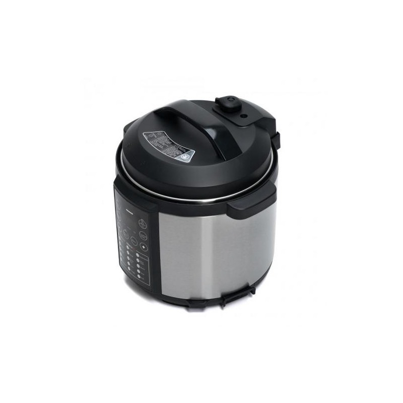 Glavne značajke Kuhanje pod pritiskom Maksimalni kapacitet odvojivog kuhala: 6L LED zaslon 15 unaprijed programiranih programa Zadržite toplinu pripremljene hrane Karakteristike Maksimalni tlak: 0,8 bara Podesivi tlak (3 postavke) Odvojiva posuda od nehrđajućeg materijala 1,5 mm 15 unaprijed programiranih programa za kuhanje, prženje i kuhanje (uključujući spor program za kuhanje) Timer max 24h Podesivo vrijeme kuhanja Sigurnosni sustav Gumb za otpuštanje pritiska Priloženi pribor: mjerna čaša, žlica Kućište od nehrđajućeg čelika   Tehnički podaci Snaga: 1000W Napajanje: 220-240V ~ 50 / 60Hz