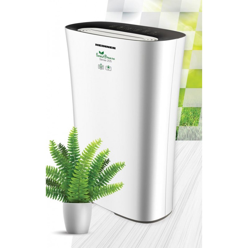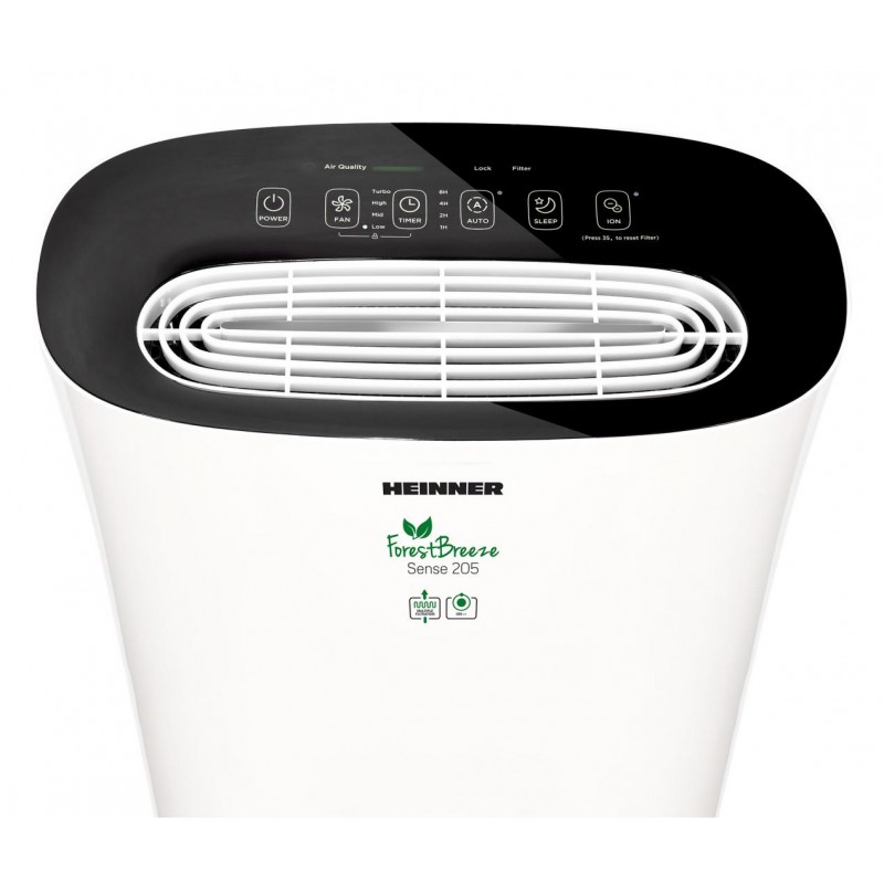 Heinner pročišćivač zraka HPA-M205 površina pokrivanja 14-24m² CADR (protok zraka) 205m³ / h kontrola na dodir složeni filtar (uključuje HEPA filtar 13) generator negativnih iona tihi način rada automatski način rada indikator za čišćenje filtra / promjena filtra 4 postavke (uključujući Turbo) tajmer 8 sati brava za djecu senzor kvalitete zraka snaga: 22W boja :bijela s crnom upravljačkom pločom