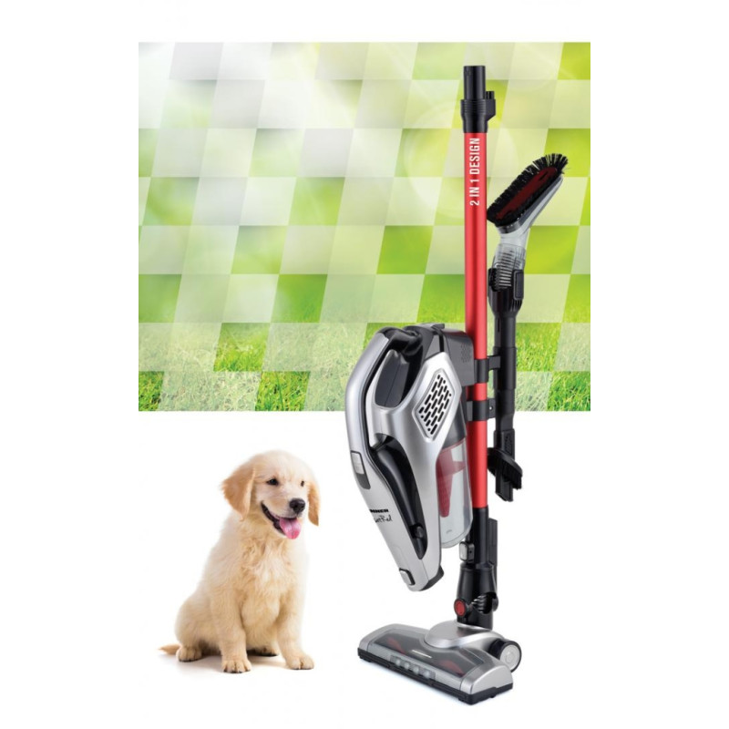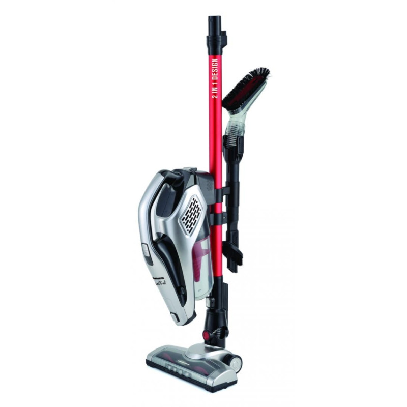 Štapni usisavač Heinner SunsetRed HSVC-V22.2RD, ciklonalni sustav filtracije, dvostruka uporaba: ručni i vertikalni usisavač, litijeva baterija: 22.2V, snaga: 195W, 2 brzine: Eco i Max, snaga usisavanja: max 14kPa, motor tipa BLDC, aluminijska metalna cijev, kapacitet spremnika: 0.5L, električna četka s LED svjetlima, pribor za uske prostore i teško dostupna područja, mogućnost ugradnje u zid, adapter za punjenje, vrijeme punjenja: 5 sati, autonomija: MAX način rada 13min, ECO način rada 30min, razina buke: >77dB   Težina 1,50 kg Visina 114,00 cm Širina 20,00 cm Dubina 23,60 cm   Tip usisavača Štapni Vrsta usisavanja Suho Vrsta površine Više površina Materijal cijevi Metalik, teleskopski Pribor za usisavač Uski prostori mlaznica, četka za kauč, stalak za punjenje Kapacitet prikupljanja 0.5 lit Moć 195W Baterija Da Snaga usisavanja 14Kpa