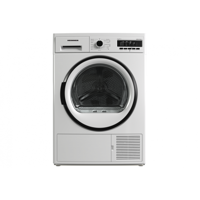 Sušilica Heinner sa toplinskom pumpom HHPD-V702A ++,   kapacitet 7 kg, Energetski razred A ++, 15 programa sušenja, LED zaslon, Program brzo sušenje 20 min, Program brzo sušenje 34 min, Program osjetljivo rublje, Funkcija odgođenog pokretanja, Funkcija protiv gužvanja, Svjetlo unutar bubnja, Birač razine sušenja, indikator čišćenja filtra za dlačice, Indikator za prikupljanje vode, Zaključavanje pristupa djetetu, Dimenzije ( ŠxDxV): 59,6×56,3×84,5 cm, Boja: Bijela