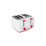 Kapacitet: 4 kriške 7 razina smeđe boje Funkcije: odmrzavanje, ponovno zagrijavanje i otkazivanje Funkcija samocentriranja Karakteristike Odvojive ladice za mrvice Boja: bijela i crvena Tehnički podaci Snaga: 1100-1300W Napon: 220-240V ~ 50-60Hz