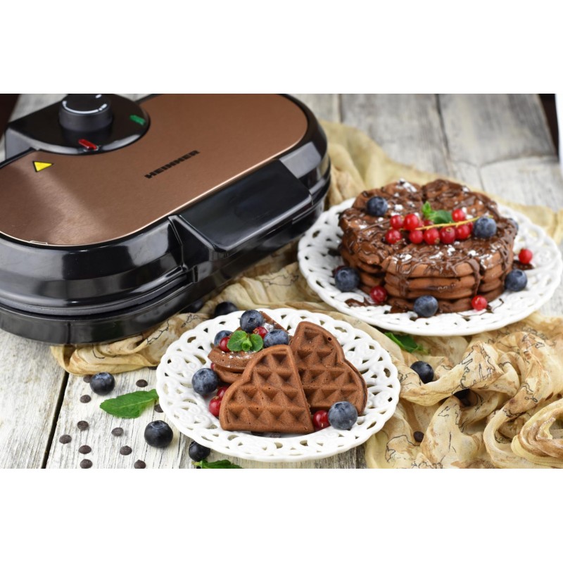 toster za vafle snaga: 1000 W, gumb za regulaciju temperature, ploče s neprijanjajućim premazom, indikatorsko svjetlo “UKLJUČENO”, indikatorsko svjetlo “spremno za uporabu”, hladna ručka, dimezija ploče 13,97 cm