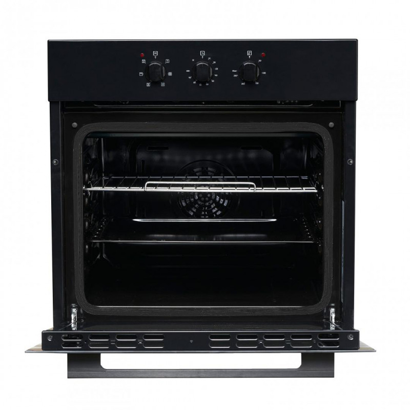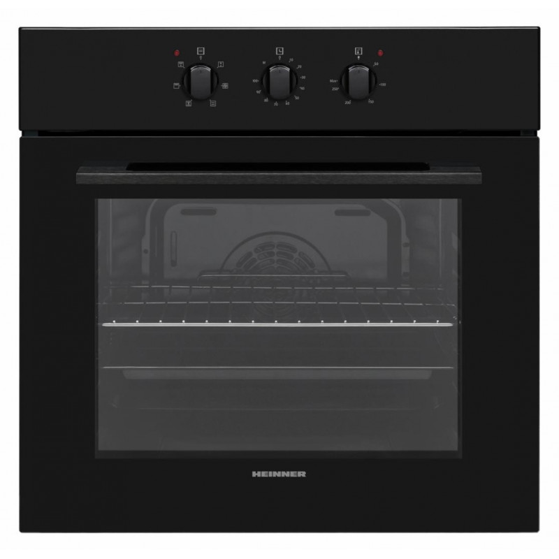 Ugradbena pećnica Heinner HBO-V656GC-BK, Višenamjenska pećnica, Kapacitet 65L, 6 funkcija, Klasa energetske učinkovitosti A, Mehanički tajmer, Roštilj, Funkcija ventilatora, Svjetlo pećnice, Dvostruka staklena vrata pećnice s unutarnjim uklonjivim staklom, Ladica za pećnicu i rešetka, Dimenzije (ŠxDxH): 59,5×55,0x59,5 cm, Boja: Crna   Neto dimenzije Težina  35,23 kg Visina  59,50 cm Širina  59,50 cm Dubina  57,50 cm
