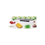 Mokri / suhi vakuum Funkcija usisavanja i brtvljenja, pražnjenje posuda, brtvljenje, puls Ugrađeni rezač Karakteristike Kapacitet vakuuma: 12l / min Uključena rola od 3 m Kompatibilno s vrećama maksimalne širine 32 cm Tehnički podaci Snaga usisavanja: max 0,75 bara Snaga kompresora: 130W