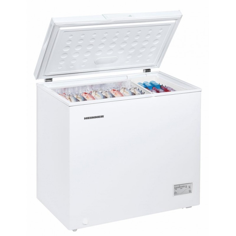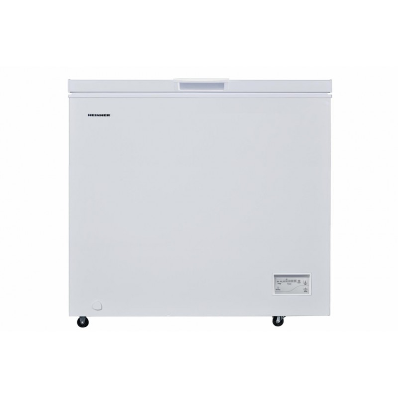 Heinner HCF-200CNHF+ zamrzivač energetski razred: F ukupni kapacitet: 198L elektronička kontrola otpornost na hladnoću (radi na niskim temperaturama: -15 ° C) otpornost na varijacije napona 175 ~ 255V vodootporni zaslon funkcija brzog smrzavanja 1 košara ručno odmrzavanje kotaći za jednostavan transport kapacitet smrzavanja: 10 kg / 24h dimenzije (ŠxDxV): 90,5 x 54,5 x 84,5 cm boja: bijela
