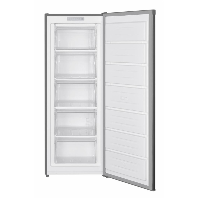 Zamrzivač Heinner HFF-168NHXF +, energetski razred: F, ukupni kapacitet: 168L, elektroničko upravljanje, zaslon s LED indikatorima, 5 odjeljaka, Funkcija brzog zamrzavanja, ručno odmrzavanje, reverzibilna vrata, kapacitet smrzavanja: 7,8 kg / 24h, razina buke: 40dB, dimenzije (ŠxDxV): 54,4 x 57,1 x 142,6 cm, boja: Izgled nehrđajućeg čelika