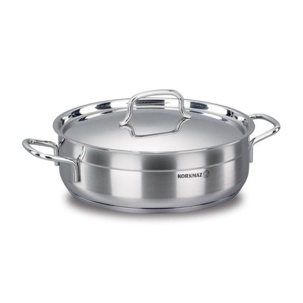 Vrhunsko kvalitetno posuđe svjetskog proizvođača Korkmaz. Primjena novih tehnologija u izradi posuđa, omogućava pripremu zdravih namirnica, energetsku uštedu i kraće vrijeme kuhanja što je u skladu s modernim i ubrzanim načinom života. Glavne karakteristike materijala u izradi Korkmaz posuđa su: Dno velike debljine pogodno za indukciju Nehrđajući čelik 18/10 Brand: Korkmaz Dimenzije: 24×8 cm, 3,5L Pogodno za indukciju: Da Perivo u perilici posuđa: Da Tip proizvoda: Lonac