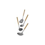 Plastični pribor s drvenom ručkom. Otporno na temperature do 210°C. Može se prati u perilici. Trogodišnje jamstvo. Kuhača 29 cm Skidač vrhnja 35 cm Kuhača sa prorezima 35 cm Žlica za serviranje 39 cm