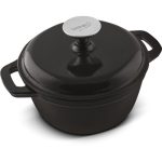 Emajlirano posuđe od lijevanog željeza – visoka kvaliteta, izdržljiv, tvrd i nepromjenjiv materijal. Unutarnji i vanjski sloj cakline otporan je na udarce i pukotine. Otpornost na visoke temperature do 280 ° C. Ručke velikog formata omogućuju ravnomjernu raspodjelu težine i sigurno držanje. Jednostavno održavanje i čišćenje. Promjer: 18 cm Kapacitet: 1,5 L Boja: crna Materijal posuđa: lijevano željezo Završena obrada : emajlirano