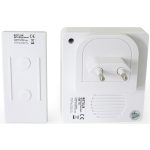 Bežično zvono na vratima s bazom na baterije Osnovna + 1 tipka 48 melodija Gumb sa zaštitom IP44 Otvoreni domet bez elektromagnetskih smetnji do 150 mLED signalizacija na zvonu i gumbu Zaključavanje zvona 3 × 1,5 V, tip AAAGumb napajanje 1 × LR23A (uključeno)Dimenzije zvona na vratima 89 × 81 × 24 mm Dimenzije tipkala 85 × 40 × 21 mm