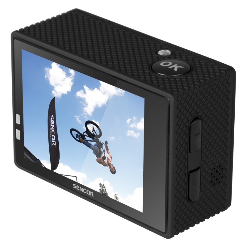 4K snimanjeCMOS Sony senzor slikeObjektiv od šesteroslojnog staklaDaljinski upravljačTFT zaslon u boji od 2″Ugrađeni WiFiRazlučivost videozapisa:3.840 x 2.160 (30 fps, MP4)2.688 x 1.520 (30 fps, MP4)1.920 x 1.080 (60 fps ili 30 fps, MP4)1.280 x 720 (120 fps, 60 fps ili 30 fps, MP4)Fotografije:16 Mpx / 12 Mpx / 8 Mpx / 5 Mpx / 2 Mpx (JPEG)Ostalo:Vidni kut od 170°Vodootpornost: 60 mSnimanje usporenih filmovaSnimanje u petljiSustav za kompenziranje podrhtavanjaPC kameraPodržava Micro SD karticu do 64 GB (nije isporučena)Baterija: 2x 3,7 V/900 mAh Li-IonUgrađeni zvučnikMicro USB, Micro HDMIDimenzije: 59 x 41 x 29mmMasa: 53gPribor:2 baterije, vodootporno kućište, komplet za postavljanje na kacigu, komplet za postavljanje bez vodootpornog kućišta, komplet za postavljanje tronošca i izradu “selfija”, kopča za pričvršćivanje na odjeću, komplet za postavljanje na upravljač ili šipku, vezice kabela, ljepljive trake 3M, metalni kabel, USB podatkovni kabel, USB punjač, priručnik, krpica za brisanje