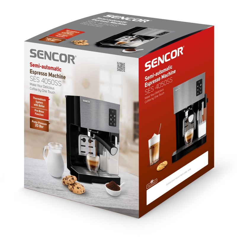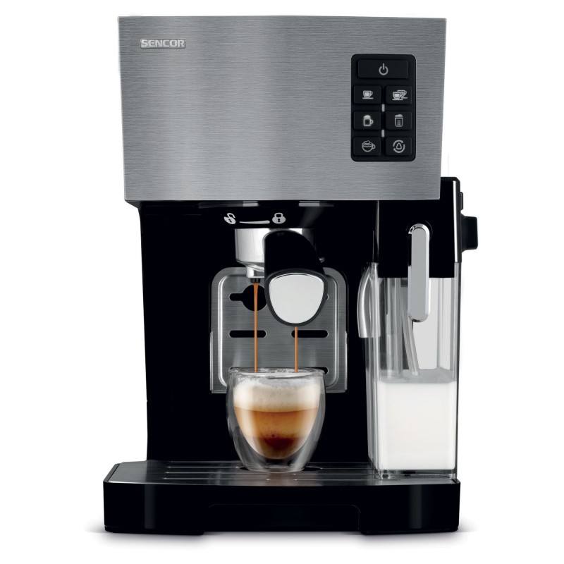 20 Bar pumpa za savršenu kavu Sustav grijanja bojlera s termoblokom Super brzo predgrijavanje Sustav za intenzivni okus Espresso s jednim dodirom, dvostruki espresso, program za kapučino, Latté. Prozirna posuda za mlijeko s odvojivim uređajem za pjenjenje mlijeka za jednostavno čišćenje Filter od nehrđajućeg čelika za 1 i 2 šalice Toplija ploča za šalice Funkcija memorije veličine kave Elektronski kontroler PCB-a kako bi se osigurala točnija temperatura pića Poklopac od nehrđajućeg čelika za espresso kavu Automatska funkcija samočišćenja Odvojivi pladanj za jednostavno čišćenje Visoka visina kupa idealna je za šalice za kavu Prenosivi 1,4-litarski spremnik za vodu uvijek osigurava svježu vodu za vašu ukusnu kavu Indikator volumena vode Pokazatelj uklanjanja kamenca Program za uklanjanje kamenca Prekidač ON / OFF s indikatorskim svjetlom Anti-slip Feet Dodatna oprema: Držač filtra, mjerni oblog, 2 filtra (za 1 i 2 čaše) Ulazna snaga: 1,450W Razina buke maks. 70dB Duljina kabela za napajanje: 95cm Dimenzije (širina × dubina × visina): 309 × 229 × 355 mm Težina: 4.3kg Napon i frekvencija: 220–240V, 50Hz