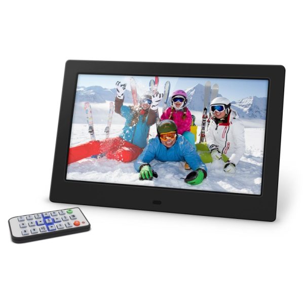 IPS zaslon formata 16:9, dijagonale 10,1″ (25,7 cm) Visoka razlučivost: 1.366 x 768 piksela Široki vidni kut, svijetle boje Čitač kartica (SD/SDHC/XD/MMC/MS) USB 2.0 podrška Ugrađeni zvučnik: 2 W Izbornik na CZ,DE,EN,ES,FR,GR,HR,HU,PL,PT,RS,RU,SK Podržani formati videozapisa: MKV, MOV, AVI, MP4 Podržani formati audiozapisa: MP3, WMA Podržani formati fotografija: JPEG, BMP Dijaprojekcija fotografija Podesivi interval dijaprojekcije Automatska reprodukcija videozapisa/slika/glazbe Kalendar/Sat/Alarm/Štoperica Podesiva svjetlina/kontrast/zasićenost Daljinski upravljač Izlaz slušalica Mogućnost postavljanja na zid Stalak za postavljanje na stol AC prilagodnik 100-240 V 50/60 Hz / DC 5 V 2 A (isporučen) Dimenzije: 256 x 166 x 25mm (ŠxVxD) Masa: 0,6 kg Sprijeda Širokokutni IPS HD panel od 10,1″ Visoka razlučivost: 1.366 x 768 piksela Reprodukcija video i audiozapisa