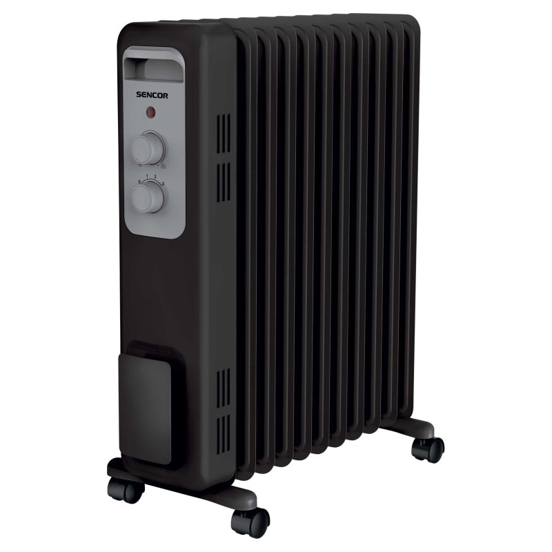 ELEKTRIČNI RADIJATOR PUNJEN ULJEM 11 grijaćih rebara Ulazna snaga: 2300 W Zaštita od pregrijavanja Sigurnosna funkcija automatskog isključivanja u slučaju prevrtanja uređaja Funkcija protiv smrzavanja DVIJE SKLOPKE ZA RAZINU JAČINE I TRI MOGUĆE POSTAVKE TEMPERATURE: 1000 W 1300 W 2300 W Rad bez održavanja (nije potrebno mijenjati ulje tijekom cijelog vijeka trajanja radijatora) Tih rad – također prikladan za spavaće sobe 4 kotačića i ručka radi lakšeg rukovanja Praktičan odjeljak za spremanje namotanog kabela napajanja Patentirani spoj grijaćih rebara osigurava bolju učinkovitost i nižu temperaturu vanjskog ruba Patentirana tehnologija odvojenog kraja grijaćih rebara sprječava pregrijavanje