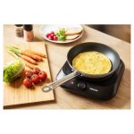JEDNOSTRUKA INFRACRVENA PLOČA ZA KUHANJE Korisno za vikendicu ili godišnji odmor Lako upravljanje i održavanje Infracrvena grijaća ploča sa staklokeramičkom pločom promjera 19 cm Ulazna snaga: 1.200 W IDEALNO ZA PUTOVANJE I VIKENDICU Ploča za kuhanje je kompaktna i lagana za nošenje, a na njenoj infracrvenoj staklokeramičkoj grijaćoj ploči možete lako skuhati mnoga ukusna jela. Osim toga, zahvaljujući glatkoj površini lako se čisti i održava. Kuhalište je opremljeno staklokeramičkom grijaćom pločom od 19 cm. Sjajno za vikendicu ili godišnji odmor. JEDNOSTAVNE KOMANDE, LAKO ODRŽAVANJE Upravljanje pločom za kuhanje je vrlo lako. Pomoću regulatora temperature uključujete ploču za kuhanje i varijabilno podešavate jačinu. Kada se ploča za kuhanje uključi, pali se svjetlosni indikator. I staklokeramička ploča za kuhanje i metalno kućište uređaja u elegantnom crnom dizajnu se vrlo lako održavaju čistima. VISOKA IZLAZNA SNAGA Kuhalište ima maksimalnu nazivnu ulaznu snagu od 1200 W. Glatka staklokeramička površina se za nekoliko minuta zagrijava na 500 °C, što znači da nije nikakav problem zagrijati tavu na 250 °C. To čini kuhalište prikladnim za prženje, sotiranje, kuhanje ili samo podgrijavanje. Infracrveno staklokeramičko kuhalište je kompatibilno sa svim tipovima posuđa. TEHNIČKE SPECIFIKACIJE: Ulazna snaga 1.200 WDimenzije (širina × dubina × visina): 300 × 290 × 75 mmMasa: 1,4 kgPromjer staklokeramičke grijaće ploče: 19 cmNapon i frekvencija: 220 – 240 V, 50/60 HzDužina kabela napajanja: 90 cmDizajn: metalno kućište, crnoLako podešavanje snage pomoću gumba za temperaturuSvjetlosni indikator uključenosti