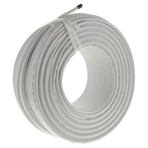 Koaksijalni kabel RG6Tip kabla: RG 6Dužina kabla: 100 mPakiranje: namot u kutijiParametri kabla:Područje presjeka unutarnjeg vodiča žice/materijal: 1.02 mm/ Cu (bakar)Područje presjeka nevodiča: 4.57 mm/ FPEPodručje presjeka vanjske žice / materijal: 64×0.12 mm / aluminijski pokrovZaštita: aluminijska folijaPodručje presjeka vanjskog omotača / materijal: 6.9 ± 0.2 mm / PVCImpedancija: 75 OhmBoja: bijela