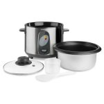Posuda za kuhanje rižeRadi na principu kuhanja pare Vanjsko tijelo izrađeno je od nehrđajućeg čelikaVolumen 1 lPotpuno automatizirani radPrikladno za kuhanje svih vrsta riže, uključujući rižu za SushiAutomatsko isključivanjeStakleni poklopac s otvorom za oslobađanje viška pareProtuklizne nogeIsporučeni dodaci: posebne lopatice za rižu, čašaza mjerenje riže i vode Ulaz snage 400 WDimenzije (širina x dubina x visina): 270 x 230 x 225 mmTežina: 1,7 kgNapon i frekvencija: 220-240 V, 50/60 Hz