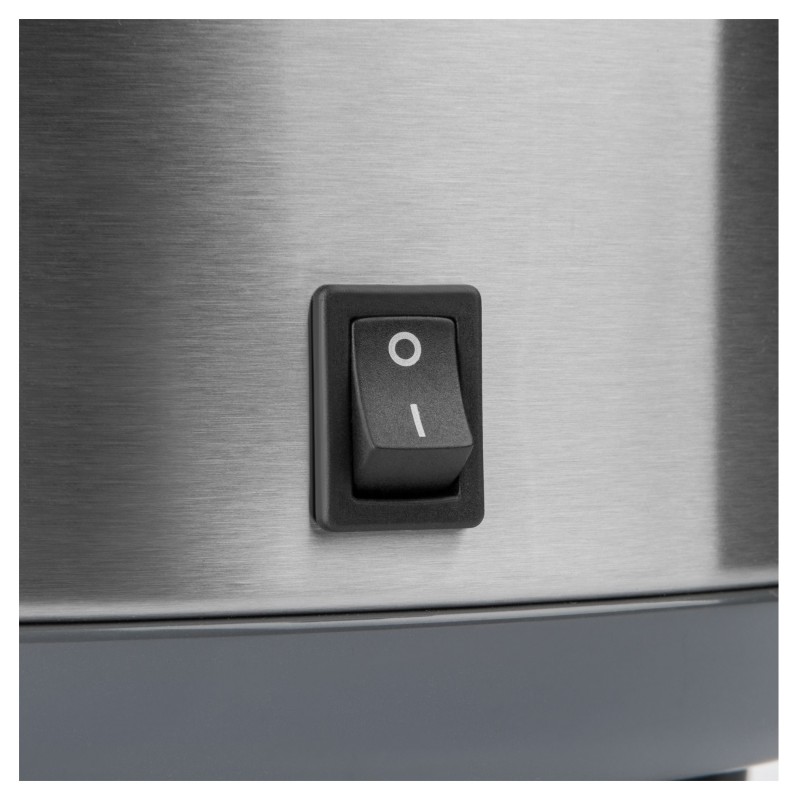 Radovi na principu parenja Vanjska obloga od nehrđajućeg čelika Volumen 1,5 l (za pripremu 1 300 g riže) Potpuno automatski rad Pogodno za pripremu svihvrsta riže, uključujući rižu za sushi Automatsko isključivanje nakon kuhanja I prebacivanje na funkciju “Keep Warm” (drži rižu toplom do 6 sati) Stakleni poklopac s rupom za višak curenja pare Praktične ručke s obje strane Jednostavno čišćenje (uklonjivi unutarnji spremnik s neprijanjajućom površinom)Radna svjetla i održavanje temperatureNeklizajuće noge TROSTRUKE SIGURNOSNE BRAVE: – zaštita od pregrijavanja – zaštita od indukcije vode – automatsko isključivanje nakon što završimo ISPORUČENA DODATNA OPREMA: – posebne lopatice na riži – riža i voda mjereći šaš Napajanje 500 W Dimenzije (w x h x v): 290 x 290 x 230 mm Težina: 2 kg Napon i frekvencija: 220-240 V, 50/60 Hz”