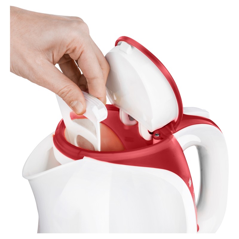 Zapremina 1.5 lOznaka razine vode na obje straneSpremište za kabel za napajanje u bazi uređajaSigurnosno zaključavanje poklopcaFiltar za uklanjanje nečistoća i naslaga, odvojiv i perivGrijač je skriven ispod grijaće baze od nehrđajućeg čelikaTrostruka zaštita:Zaštita od pregrijavanje kad nema vode kod uključenja uređajaAutomatsko isključivanje kod podizanja s bazeAutomatsko isključivanje kad voda proključaSredišnji priključak od 360°On/Off prekidač za uključivanje/isključivanje na ručkiSvjetlosni indikator upaljenosti uređajaErgonomski oblikovana ručkaUlazna snaga 2000 WSunlight kontroler