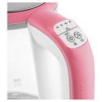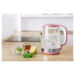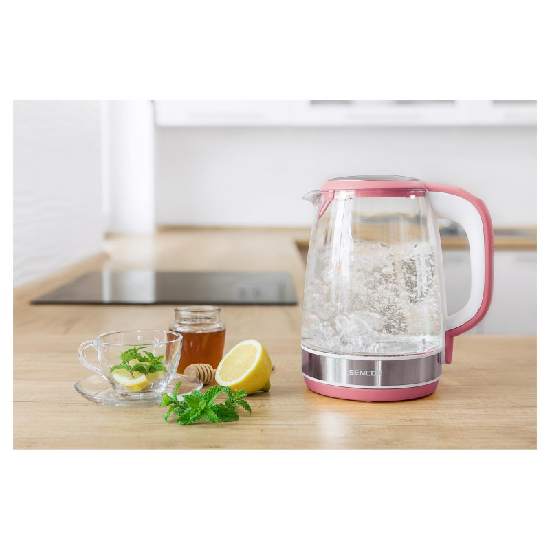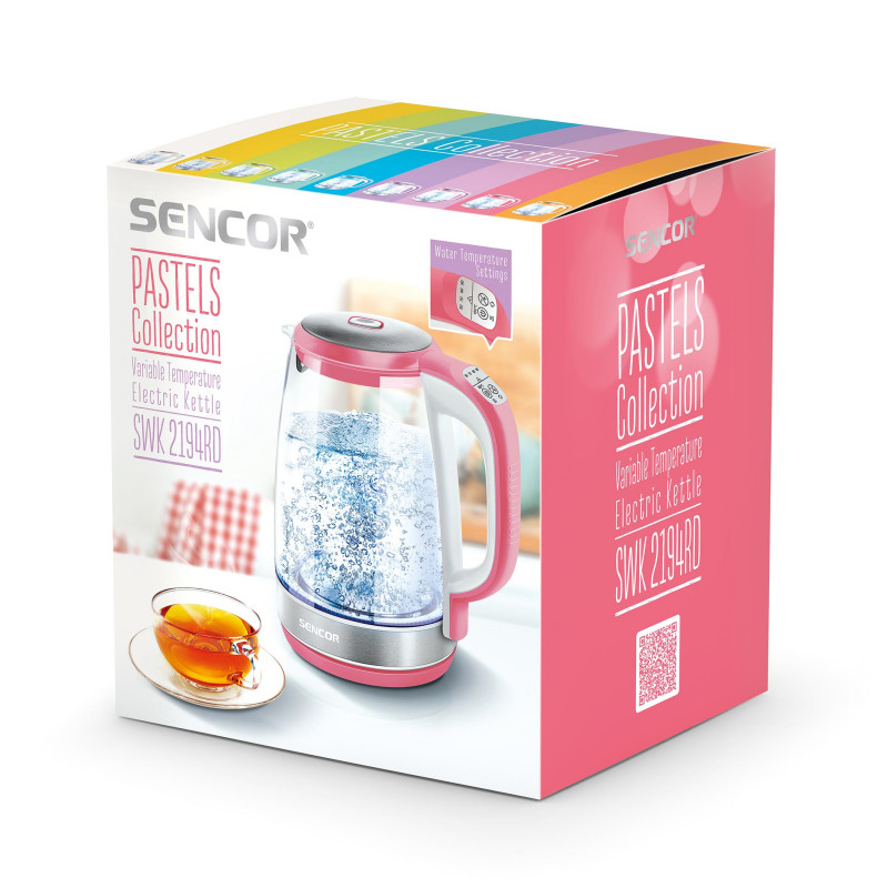 Kapacitet 2,0 l Održavajte temperaturu 30 minuta Ulaz snage: 2 200 W Postavke temperature vode: 50-70-80-90-100 °C DVA NAČINA RADA: Zagrijte vodu na 100 °C Zagrijte vodu na odabranu temperaturu (50-70-80-90-100 °C) i održavajte tu temperaturu Postignut zadani zvuk temperature Filtar za prljavštinu i kamenac Dvostrana oznaka razine vode Spremište kabela za napajanje u podnožju UNUTARNJE LED SVJETLO S PROMJENJIVIM POZADINSKIM OSVJETLJENJEM U BOJI KOJE OZNAČAVA: Zelena kada je temperatura postavljena na 50 °C Plava kada je temperatura postavljena na 70 °C Ljubičasta kada je temperatura postavljena na 80 °C Narančasta kada je temperatura postavljena na 90 °C Pogodno i za korisnike oštećena sluha (indikatorsko svjetlo za rad)Grijaća baza od nehrđajućeg čelika s natkrivenom spiralom za grijanje Poklopac se lako otvara pritiskom na gumb TROSTRUKI SIGURNOSNI SUSTAV: Zaštita od pregrijavanja kada je uključena bez vode Automatsko isključivanje kada se ukloni iz baze Automatsko isključivanje kada se dostigne točka vrenja DIMENZIJE I SPECIFIKACIJE Središnji STRIX priključak 360 ° Težina bez baze: 930 gNapon i frekvencija: 220 – 240 V ~ 50/60 Hz