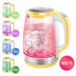 Električno kuhalo za vodu s kontrolom temperature Kapacitet 2,0 lOdržavajte toplinsku funkciju 30 minUlazna snaga 2200 WZagrijavanje vode na odabranu temperaturu: 50-70-80-90-100 °CFiltar za hvatanje prljavštine i naslagaDvostrani vodeni žigSkladištenje kabela za napajanje na postoljuUnutarnja LED rasvjeta Pogodno i za korisnike oštećena sluha (svjetlosnaindikacija rada)Dno grijanja od nehrđajućeg čelika s skrivenom zavojnicomza grijanje Jednostavno otvaranje poklopca pritiskom na gumbTrostruki sigurnosni sustav: – Zaštita od pregrijavanja kada je uključena bez vode- Automatsko isključivanje prilikom uklanjanja iz baze-Automatsko isključivanje kada se dostigne točka vrenja Sredina 360 ° STRIXkonektor Težina bez postolja: 930 gNapon i frekvencija:220 – 240 V, 50/60 Hz