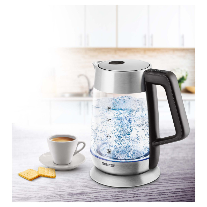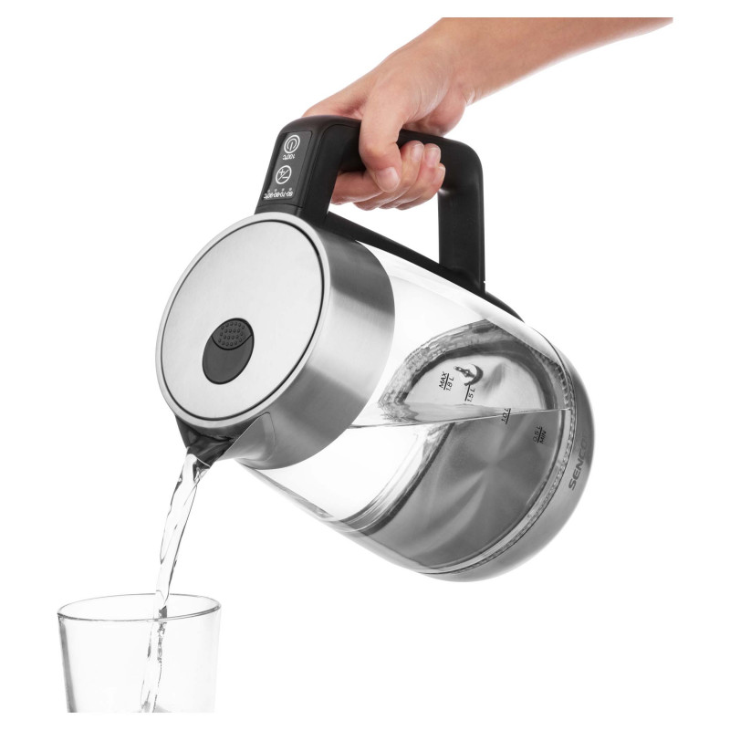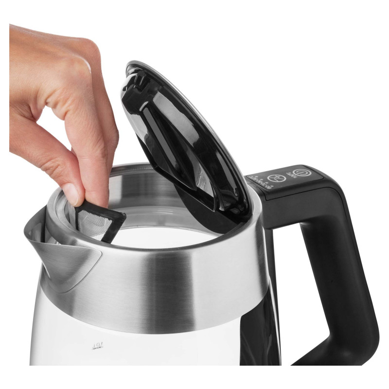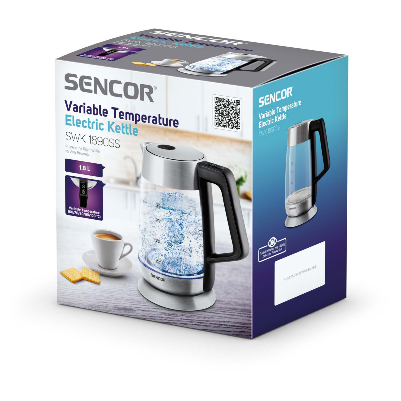 Kapacitet 1.8L Ulaz snage: 2.200W Mekani pannel za kontrolu dodira DVA GUMBA ZA JEDNOSTAVNU KONTROLU: Gumb Uključeno/isključeno Gumb za temperaturu povećanja/smanjenja vrijednosti Postavke temperature vode: 60-70-80-90-100 °COdržavajte temperaturu 120 minuta TRI NAČINA RADA: Zagrijte vodu na 100 °C Zagrijte vodu na odabranu temperaturu (60-70-80-90-100 °C) Održavajte vodu na odabranoj temperaturi (60-70-80-90-100 °C) 120 minuta Pogodno i za korisnike oštećena sluha (indikatorsko svjetlo za rad)Grijaća podloga od nehrđajućeg čelika s natkrivenom spiralom za grijanje Poklopac se lako otvara pritiskom na gumb TROSTRUKI SIGURNOSNI SUSTAV: Zaštita od pregrijavanja kada je uključena bez vode Automatsko isključivanje prilikom uklanjanja iz baze Automatsko isključivanje kada se dostigne postavljena temperatura SPECIFIKACIJE Središnji konektor od 360 ° Nazivni napon: 220–240VNazivna frekvencija: 50/60HzTežina bez baze: 960g