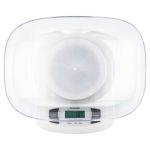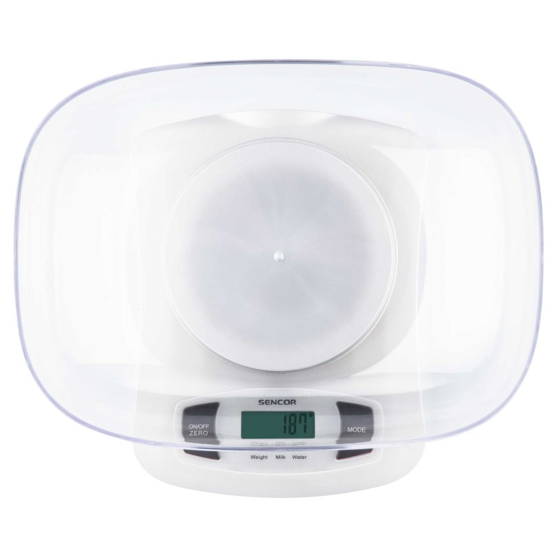 Praktična odvojiva plastična posudaVeliki LCD zaslon (40 x 19 mm)Visina znamenki na zaslonu: 14 mmVelike tipke za laganu kontroluVaže do 5 kg / osjetljivost 1 gTara (oduzimanje težine posude ili mogućnost postupnog ponovnog vaganja)Mogućnost odabira mjernih jedinica (g/ml/oz)Indikator ispražnjenosti baterije i preopterećenostiAutomatsko isključivanje kod mirovanjaPriloženi dodatci: 1x 3V CR2032 litijska baterijaZapremina posude za vaganje: 2000 mlDimenzije bez posude (širina x dužina x visina): 168 x 226 x 40 mmDimenzije s posudom (širina x dužina x visina): 266 x 244 x 100 mm