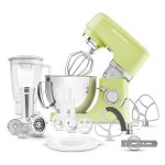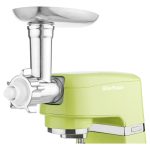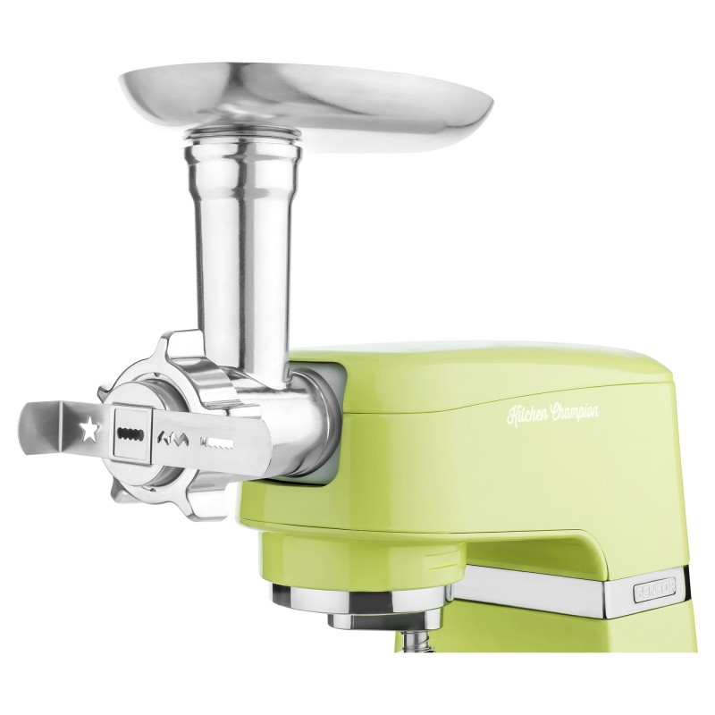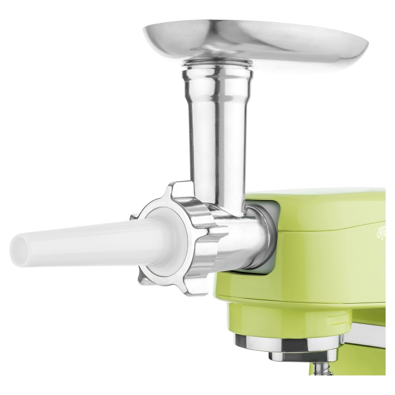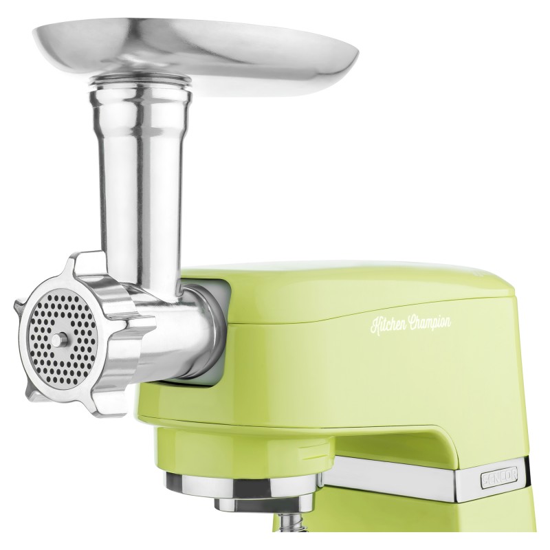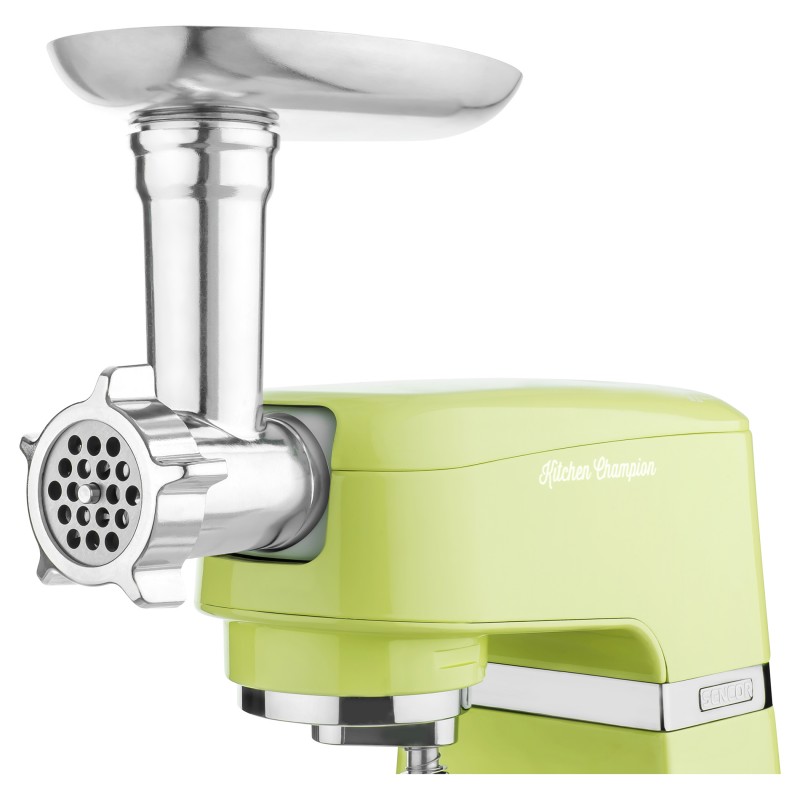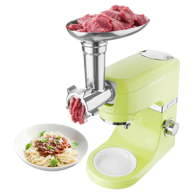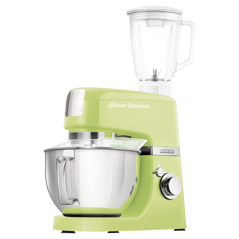 PROCESOR HRANE SENCOR Snažan motor od 1 000 W s jamstvom 6 godina Robusno tijelo u cijelosti od metala i s metalnim zupčanicima Dizajn s 3 glavčine Sencor pametna snaga i energija – za optimalnu brzinu Regulator brzine s blagim započinjanjem i 8 razina brzine Impulsna funkcija LED rasvjeta posude za sjeckanje Posuda od nehrđajućeg čelika veličine 4,5 litara i mjernom ljestvicom Proziran poklopac posude s dovodnom cijevi za jednostavno dodavanja sastojaka tijekom sjeckanja Plastičan poklopac za skladištenje posude od nehrđajućeg čelika Planetarni sustav miješanje, sjeckanja i tučenja – osigurava potpunu nasjeckanost cjelokupnog sadržaja posude – nastavci simultano rotiraju oko svojih vlastitih osi, kao i oko osi motora – omogućuje obradu 100% sadržaj posude, jamči savršeno sjeckanje sastojaka Bajunetni sustav postavljanja nastavaka omogućuje brzo sklapanja i zamjenu Osiguravajuća blokada u gornjem položaju nagibnog kraka Staklena posuda za sjeckanje veličine 1,5 litara Aparat za mljevenje mesa za fino i grubo mljevenje 3 nastavka za miješanje, sjeckanje i tučenje – oštrica za miješanje, mlatilica A-profila, pjenjača za tučenje Specijalna FLEXI mlatilica za miješanje, pogodna za fina tijesta Punilica kobasica s 2 promjera Izrađivač kolača Tuče do 8 bjelanjaka