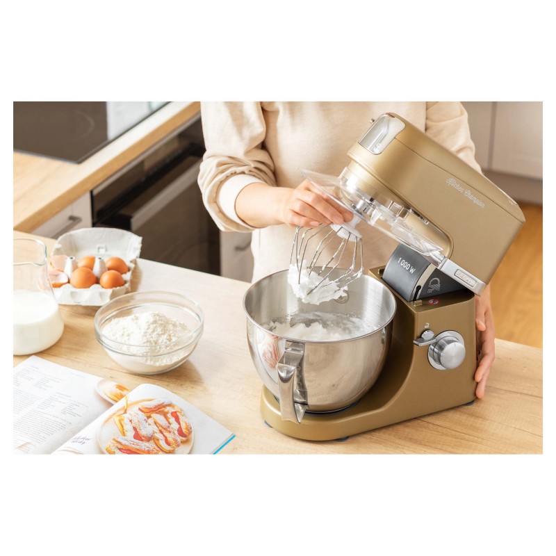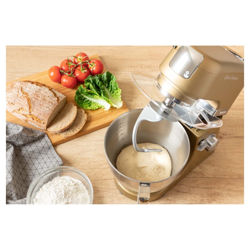 PROCESOR HRANE SENCOR Izuzetno snažan motor od 1000 W sa 6 godina jamstva Robusno tijelo od punog metala s metalnim zupčanicima Dizajn s 3 čvorišta Sencor Smart Power & Energy – za optimalnu brzinu Promjenjiva kontrola brzine s glatkim startom i 8 stupnjeva brzine Pulsna funkcija LED svjetlo posude za miješanje Posuda od nehrđajućeg čelika od 4,5 litre s mjernom vagom Prozirni poklopac posude s cijevi za punjenje za jednostavno dodavanje sastojaka tijekom miješanja Plastični poklopac za odlaganje posude od nehrđajućeg čelika SUSTAV PLANETARNOG MJEŠENJA, MJEŠENJA I BIČENJA – osigurava da se sav sadržaj u posudi potpuno izmiješa – priključci se istovremeno rotiraju oko svoje osi kao i oko osi mjenjača – omogućuje obradu 100% sadržaja posude, jamči savršeno miješanje sastojaka Sustav montaže bajonetnog priključka omogućuje brzu montažu i zamjenu Odvojiva posuda i pribor za jednostavno pranje čak i u perilici posuđa Sigurnost za zaključavanje u gornjem položaju nagibne ruke Stakleni vrč od 1,5 litara Mlinac za meso za grubo i fino mljevenje 3 NASTAVKA ZA MJEŠANJE TIJESTA – oštrica za mijesenje, mješalica u obliku slova A, metlica za mućenje u obliku balona POSEBNA FLEXI MJESILICA ZA FINO TIJESTO 5 izmjenjivih nastavaka za savršene rezultate – valovito (sljemensko) rezanje – Tanko rezanje – Grubo usitnjavanje/ ribanje – Fino usitnjavanje / ribanje – Rendaka za tvrdi sir i orahe Punjač za kobasice u 2 promjera Aparat za kolačiće Umutiti do 8 bjelanjaka