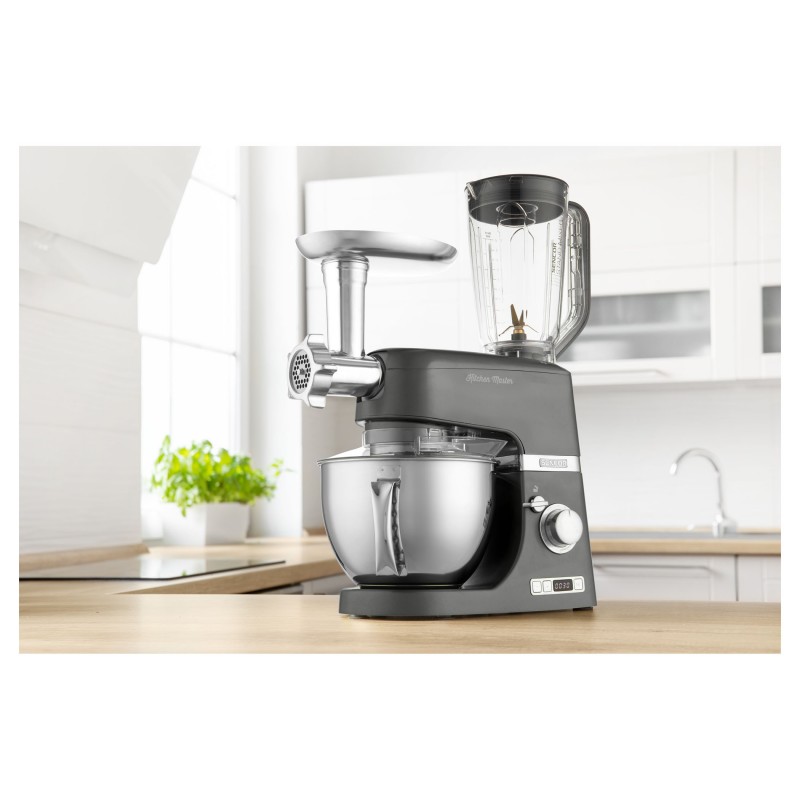 · Sencor kuhinjski robot mikser STM 7878BK · IZVANREDNO SNAŽAN MOTOR OD 1.000W S JAMSTVOM NA 6 GODINA · Robusno kućište od punog metala s metalnim zupčanicima · Dizajn s 3 držača · LED zaslon s funkcijom vremena rada miješalice i odbrojavanja · Sencor pametna distribucija napajanja i energije za optimalnu brzinu · Varijabilna regulacija brzine s postupnim pokretanjem i 8 razina brzine · Funkcija impulsa · LED osvjetljenje zdjele za miješanje · Posuda od 4,5 l od nehrđajućeg čelika s drškom i mjernom skalom · Posuda od 3 l od nehrđajućeg čelika s mjernom skalom · Posuda za miješanje od 1,5 l izrađena od Tritana bez BPA · Proziran poklopac zdjele s cijevi za umetanje omogućuje lako dodavanje sastojaka u toku miješanja · Plastični poklopac zdjela od nehrđajućeg čelika za pohranu osigurava temeljito usitnjavanje svih sastojaka u zdjeli nastavci se simultano rotiraju oko svoje osi i oko osi kućišta sa zupčanicima omogućuje obradu 100% sadržaja zdjele i jamči savršeno usitnjavanje sastojaka · Bajunetski sustav pričvršćivanja nastavaka omogućuje brzo sklapanje i zamjenu · Odvojiva zdjela i pribor za lako pranje, čak i u perilici suđa · Sigurnosno zaključavanje sklopivog kraka u gornjem položaju · Mlinac za meso za grubo i fino mljevenje · 3 nastavka za miješenje, tučenje i lagana tijestalopatica za miješenje, nastavak za tučenje u obliku slova A, balonska mutilica · Posebna FLEXI mutilica prikladna za fina tijesta · Punilica kobasica u 2 promjera · Nastavak za kekse · Istovremeno tučenje do 8 bjelanjaka Garancija 24 mjeseca, uz prijavu 60 mjeseci