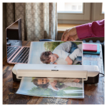 Laminator do veličine A3 Fotografije i dokumentiVruće laminiranjeUlazna širina: 330 mm Radi sa 150-250 (2×75 – 2×125) Mikronske vrećiceBrzo zagrijavanje 2-4 min Jednostavan za upotrebuIndikator spreman Tihi mehanizamza uvlačenje s dva valjka približno 300 mm/ minBrzina laminiranja Snaga: 230 V / 50 Hz; 160 WDimenzije: 430x110x66 mmTežina: 1,2 kgIdealno za laminiranje: certifikati, crteži, dokumenti, skice, računaln ispisi, pozivnice, fotografije, kalendari, karte