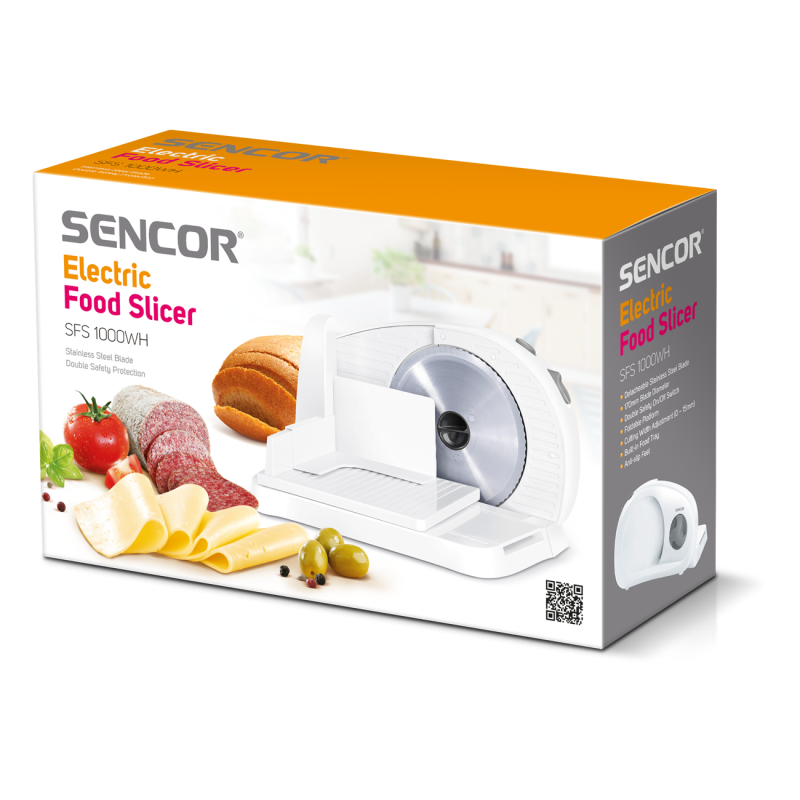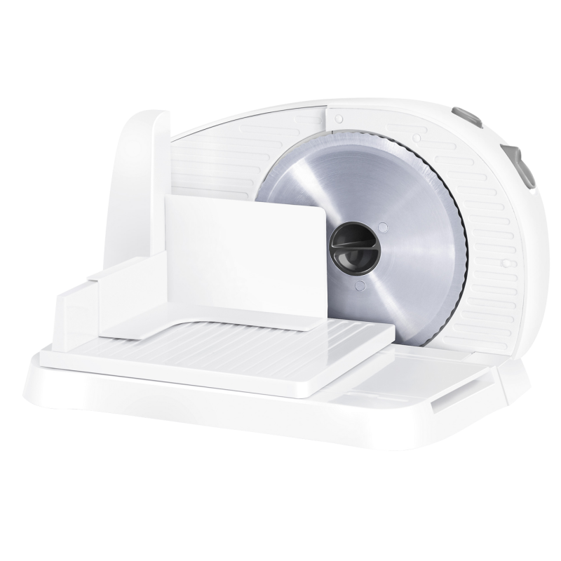 Pomični disk za rezanje od nehrđajućeg čelika (promjer 170 mm)Promjenjiva širina reza s brojčanikom za podešavanje (1-15 mm)Sklopiva ploča postoljaPomična traka za hranu (167 x 179 mm) s graničnicima u oba smjeraNatiskivač (129 x 84 mm) s iglicama protiv klizanja hraneNatiskivač se može potpuno izvaditi za rezanje većih komada hranePomični pladanj za hvatanje narezane hranePomični dijelovi za jednostavno čišćenje i pranje (pladanj, ploča postolja, traka, natiskivač, disk za rezanje)Ugrađena zaštita za prsteSigurnosni mehanizam protiv iznenadnog uključenja, za zaštitu djeceSpremište kabelaNožice protiv proklizavanjaNazivna snaga 100 WDimenzije (duljina x dubina x visina): 339 x 246 x 206Dimenzije kada je sklopljen bez trake za hranu (duljina x dubina x visina): 339 x 109 x 206Težina: 1.98 kg