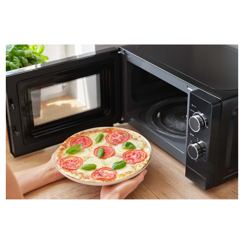 MIKROVALNA PEĆNICA Mikrovalno grijanje za jednostavno i brzo podgrijavanje i kuhanjeIzdržljiva unutrašnjost cakline za jednostavno čišćenjesamo dva kontrolna gumba koji osiguravaju jednostavnu ručnu kontroluvelikog unutarnjeg prostora: Kompatibilno s još većim pločama do 25,5 cm Volumen 20 l 5 Razine snage mikrovalne pećnice kako bi se zadovoljila svaka potrebaFunkcija odmrzavanja za brzo i higijensko odmrzavanje35-minutni timer Dovoljan i za kuhanjeSnaga mikrovalne pećnice 700 WZvučni signal za označavanje kraja integrirane ručke za otvaranje promjera rotirajuće ploče : 255 mmDimenzije (s × h × d): 440 × 259 × 364 mmTežina: 10 kg