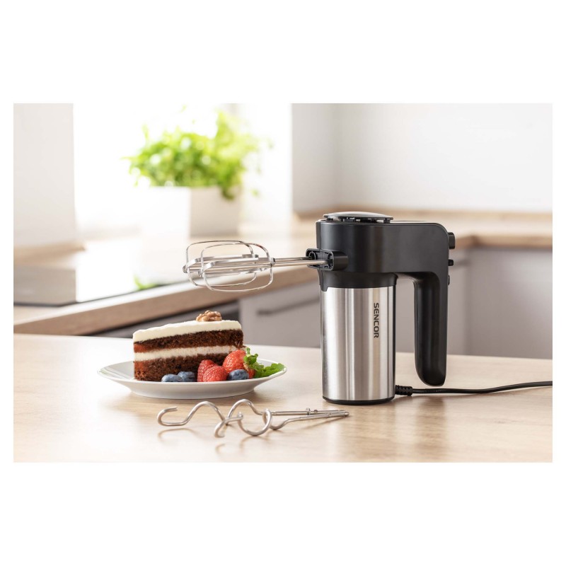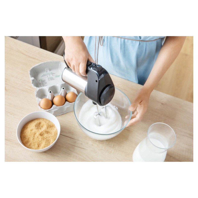 ZA PRIPREMU KORISTITE SET NASTAVAKA ZA MIJEŠANJE OD NEHRĐAJUĆEG ČELIKA Više ne morate koristiti drvene žlice, metlice ili žlice !  U mojoj dodatnoj opremi pronaći ćete dva para nastavka za mućenje od nehrđajućeg čelika, a s ergonomskom ručkom osiguravam ugodno rukovanje u svim smjerovima.  MOJA PONUDA DODATNE OPREME:  2x metlice od nehrđajućeg čelika – oni su najprikladniji za šlag, vrhnje, pire krumpir, namaze, bjelanjke i žumanjke itd. 2x kuke za gnječenje od nehrđajućeg čelika – savršeno će vam olakšati rad s obradom gustog tijesta za kolače, kruh, kiflice, itd.   Nudim izvrsne performanse i dobru konstrukciju! Za njegovu uporabu efikasan rad motora koji je lagan, miran i ima snagu od 400 vata . Mogu ga bez problema vrtjeti pri velikim brzinama u 6 brzina. A ako vam to nije dovoljno, možete koristiti TURBO način za još veće okrete u djeliću sekunde.   MOJE GLAVNE SNAGE Potrošnja energije 400 W Moćan, tih i lagan motor s dugim vijekom trajanja Dodaci sadrže set od 4 nastavka za bičevanje od nehrđajućeg čelika   FUNKCIJE I ZNAČAJKE Potrošnja energije 400 WSnažan, tih i svjetlo motor sa životnim dugo uslugaPribor uključuju set od 4 nehrđajućeg čelika priloga mućenje6 stupnjeva prijenosa za sve vrste recepatapuls turbo dostiže maksimalnu snagu / brzinu gotovo odmah  2 VRSTE DODATAKA: 2 metlice od nehrđajućeg čelika za šlag, vrhnje, pire od krumpira, namaze, bjelanjke i žumanjke 2 kuke za gnječenje tijesta od nehrđajućeg čelika  Gumb za udobno otpuštanje i uklanjanje dodatakaTihi radMinimalistički dizajn odgovara svima.Jednostavno rukovanje zahvaljujući ergonomskoj ručkiTermička zaštita od pregrijavanja  PRIBOR Tijelo za ručnoudaranje 2x metliceod nehrđajućeg čelika 2x kuke za miješenje od nehrđajućeg čelikaOpskrbni kabel  TEHNIČKI OPIS Napon: 220-240 VFrekvencija: 50 HzPotrošnja energije: 400 WDužina kabela za napajanje: 1,2 mBuka: 85 dB (A)