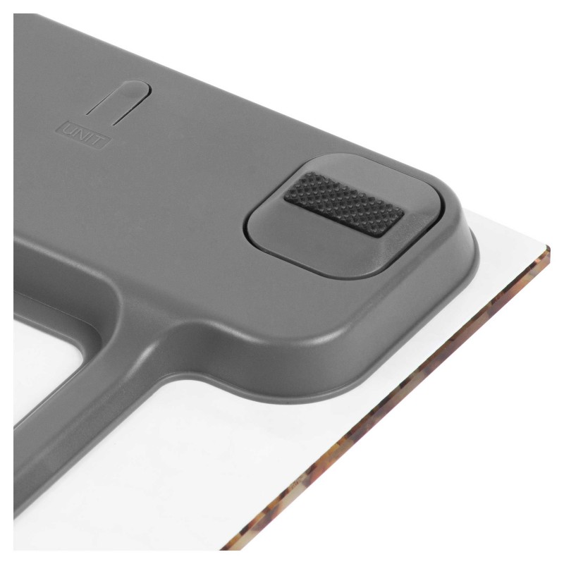 Staklena površina za lako čišćenje Temperirano sigurnosno staklo (5 mm) Tanak dizajn (21 mm) Težina do 150 kg (osjetljivost 100 g) 4 visoko precizna senzora za točno vaganje Automatsko uključivanje (važe čim osoba stane na vagu) Ekstra veliki LCD zaslon (74 x 28,5 mm) Funkcija zaključavanja podatka za preciznije mjerenje (izmjerena težina ostaje prikazana 10 sekundi) Mogućnost odabira mjernih jedinica (kg/lb) Indikator slabe baterije i preopterećenja Automatsko isključivanje kada se ne koristi Izvor napajanja: 1 x litijska baterija CR2032 (priložena)