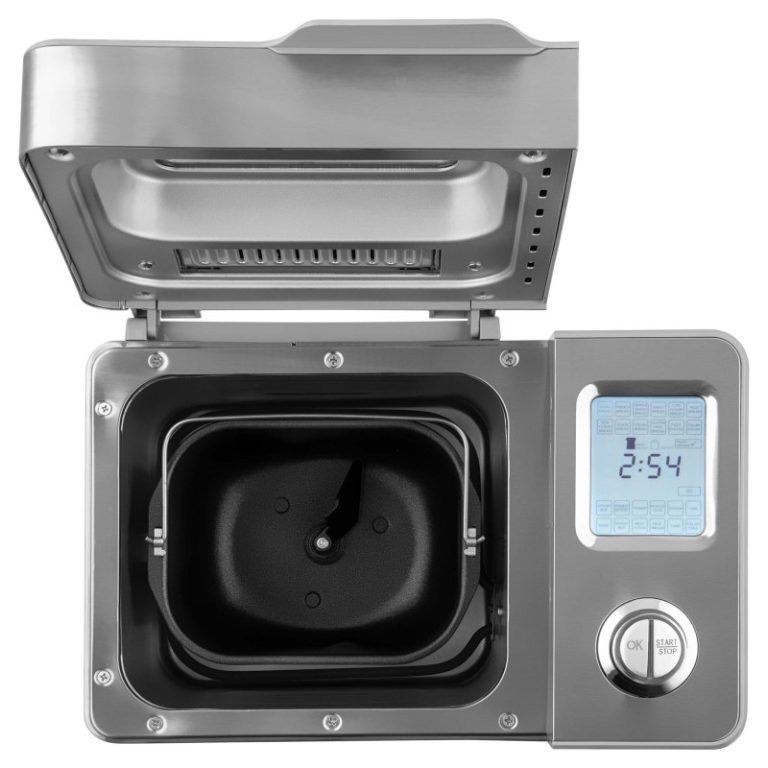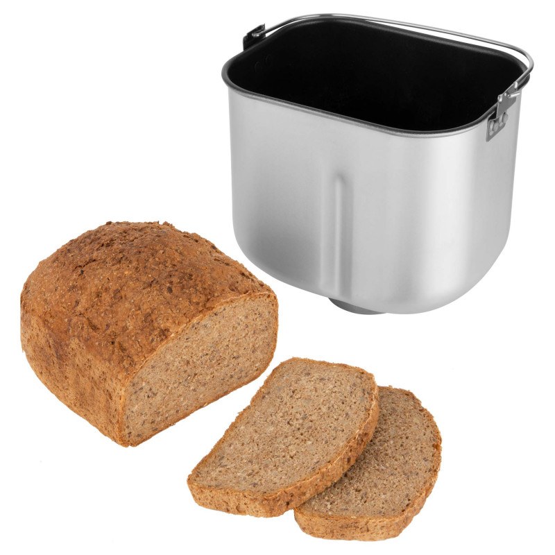 Veliki LCD zaslon i poklopac s velikim prozorom za gledanje Program kuhanja džemova i marmelada 3 postavke razine boje kore (svijetlo / srednje tamno / tamno) Funkcije i svojstva13-satni prekidač za odgođeni timerza pečenje 10 unaprijed postavljenih programapečenja 1 unaprijed postavljeni program za kuhanje džemova i marmelada1 unaprijed postavljeni program za izradu samo tijesta (npr. za pizzu, bagete, peciva, krafne itd.)Maksimalna zapremina kruha 900 gVeliki POKLOPAC LCD zaslona s prozorom za gledanje 10 minuta memorije u slučaju nestanka struje (aparat za kruh nastavlja pečenje)Držite toplu funkciju 60 minuta nakon završetka pečenjaNeprijanjajuća posuda za pečenje i kuke za miješanje za jednostavno održavanjePosuda za pečenje sigurna za perilicu posuđa Zvučni signal za dodavanje sastojaka koji zahtijevaju kraće vrijeme pečenja Isporučeni pribor: mjerna čaša, žlica i čelična kuka za uklanjanje kuka za gnječenje Dimenzije i specifikacijeUlaz snage 550WProtuklizne nogeDimenzije (širina x dubina x visina): 403 x 255 x 305 mm