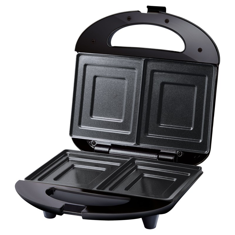 Neprijanjajući premaz površina za pečenje Toplinski izolirana drška i kućište Indikator rada – crveni svjetlosni indikator Indikator grijanja (spremnost za pečenje) – zeleni svjetlosni indikator Mogućnost skladištenja u okomitom položaju Sigurnosni osigurač Duljina kabela za napajanje 75 cm Ulazna snaga 700 W Dimenzije (duljina x širina x visina): 230 x 215 x 90 mm Težina: 1,0 kg