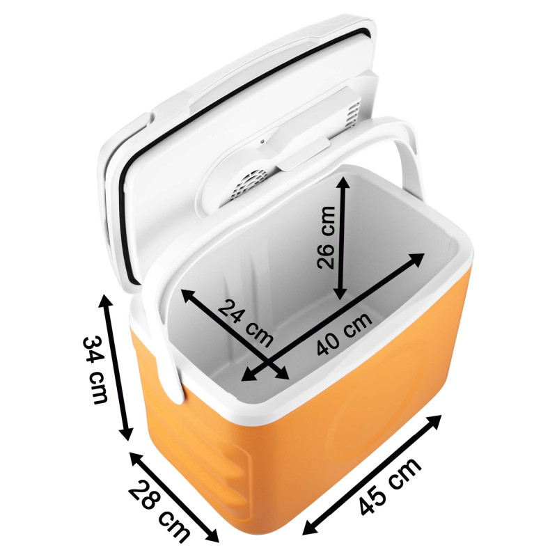 Bruto kapacitet: 22 l (21 l sa zatvorenim poklopcem) Hladi se do 20 °C ispod temperature okoline Izvor napajanja: 12 V istosmjerni utikač za automobil GLAVNE PREDNOSTI Bilo da putujete, vikendice, kampirate ili uživate u vodenim aktivnostima, pobrinut ću se za vaša pića i osvježenja i održati ih hladnima za vas. Napajam se preko 12-voltnog utikača.Zahvaljujući vrlo dobroj izolaciji i snažnom rashladnom elementu, 18-20 °C ispod temperature okoline Imam sjajne unutarnje i vanjske dimenzije i mogu udobno stati gdje god trebate da budem pri ruci. Moj dugi kabel za napajanje lako će doseći bilo koju utičnicu od 12 V. Imam veliku čvrstu ručku koja stane točno u vašu ruku i kad je naslonite na rub na sredini donjeg ruba poklopca, ona služi kao proteza tako da možete lako pristupiti mom sadržaju.