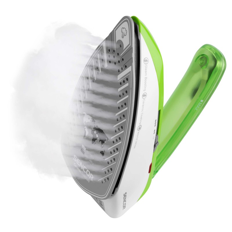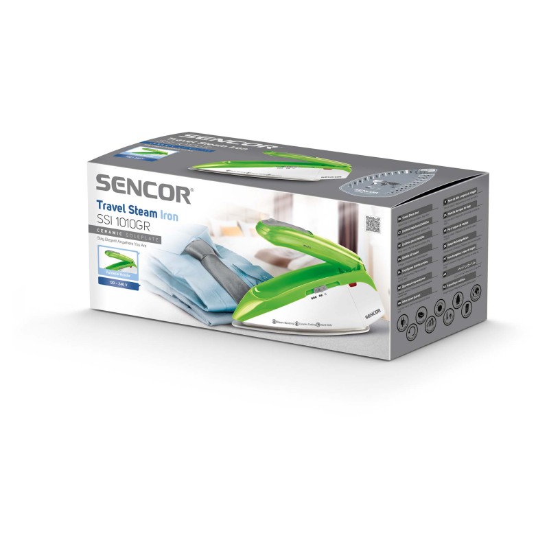 Sencor putno glačalo na paru SSI 1010GR · Ulazna snaga 1 085 W · Keramička površina za glačanje · Garancija 24 mjeseca