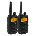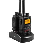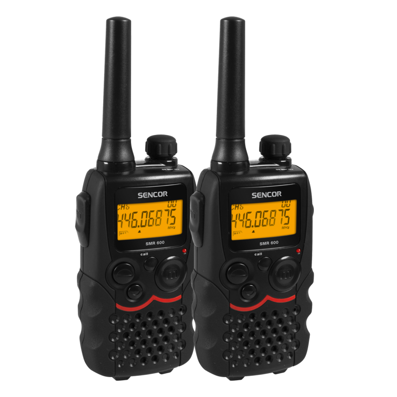 Set od dvije osobne radio stanice (Walkie-Talkie) Domet do 8 km na otvorenom 8 kanala 38 s 38 CTCSS kodova 83 DCS kodova za veću zaštitu privatnosti komunikacije Zaokretni ON/OF gumb za glasnoću Automatsko traženje kanala Izbor od 15 zvučnih signala za dolazni poziv VOX tehnologija – razgovor bez korištenja ruku Zaslon s ispisom kanala Funkcija praćenja dva kanala Automatsko skidanje šuma Automatska štednja baterije Potvrda prijema poruke zvukom (Roger Beep) ON/OFF Zaključavanje tipkovnice ON/OFF Uključivanje i isključivanje zvuka na tipkovnici ON/OFF Veliki zaslon s pozadinskim svjetlom Indikator napunjenosti baterije s upozorenjem za ispražnjenost Priključak za mikrofon/slušalice/punjač Sadržaj: 2 PMR ručne stanice 2 kvačice za pojas Punjiva baterija Dvostruka baza za punjenje AC adapter