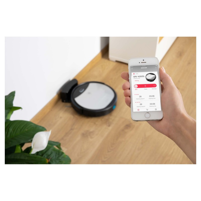 · Idealno za čišćenje tepiha, plutajućih podova, parketa, linoleuma, podne pločice itd. · Prednji infracrveni senzor protiv udara · Vrlo miran rad pogodan za kućne ljubimce · BLDC motor za dugi vijek trajanja · DVA CENTRALNA SUSTAVA USISAVAČA S ROTACIJSKIM ČETKICAMA: Snažni centralni usisavač s kombiniranom rotacijskom četkom idealan je i za usisavanje tepiha i tvrdih podova Rotirajuće bočne četke za savršeno čišćenje u uglovima · ŠIROK RASPON SENZORA Senzor na branici za otkrivanje prepreka Senzor za stepenice bezbrižno se koristi i u zgradama s više etaža Senzor za točnu navigaciju za automatski povratak na priključnu stanicu · “MOP” FUNKCIJA Opcija vlažno brisanje · Uključeni spremnik za vodu i krpa za brisanjekontrolira se protok vode pomoću električne pumpe. · Kombinuje 4 programa za čišćenje maksimalne površine:duž zida (pokret duž zida)mrlja (čišćenje mjesta na površini od 2 m2) · Naključno (kretanje u nasumičnom smjeru) · Linearno ( ZigZag) · Promjenjive postavke timera (automatski početak čišćenja u određeni dan, sat i minutu):samo jedan dan u tjednuViše dana u tjednusamo radni danisamo vikendi · Vrijeme rada do 120 minuta s jednim punjenjem · Daljinski upravljač pomoću alata odvojeni daljinski upravljač · Daljinski upravljač pomoću WiFi aplikacije za mobilni telefon · Stanica za punjenje s opcijom postavljanja na zid ili namještaj · Automatski povratak na stanicu za punjenje nakon dovršetka programa · Automatski povratak na stanicu za punjenje kada baterija oslabi · Automatsko isključivanje ako se kotači blokiraju · Može putovati preko praga vrata do visine do 1,5 cm · Automatski nadzor usluge sa poruke upozorenja prikazane na zaslonu daljinskog upravljača · Indikator stanja na tijelu usisavača (stanje pripravnosti, punjenje, potpuno napunjeno) · 2 spremnika za prašinu:spremnik samo za suho usisavanje – 475 mlkombiniranog spremnika za prašinu za brisanje – 240 ml za prašinu & 230 ml spremnik za vodu · Akumulator: 2.600 mAh, Li-ion (potpuno napunjen nakon otprilike 5 sati) · Razina buke: <60 dB Garancija: 24 mjeseci, uz prijavu 60 mjeseci