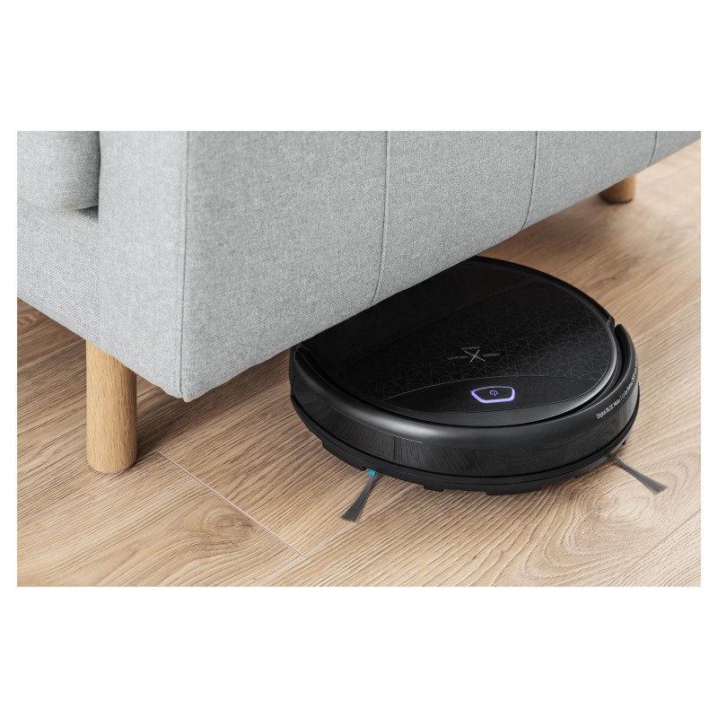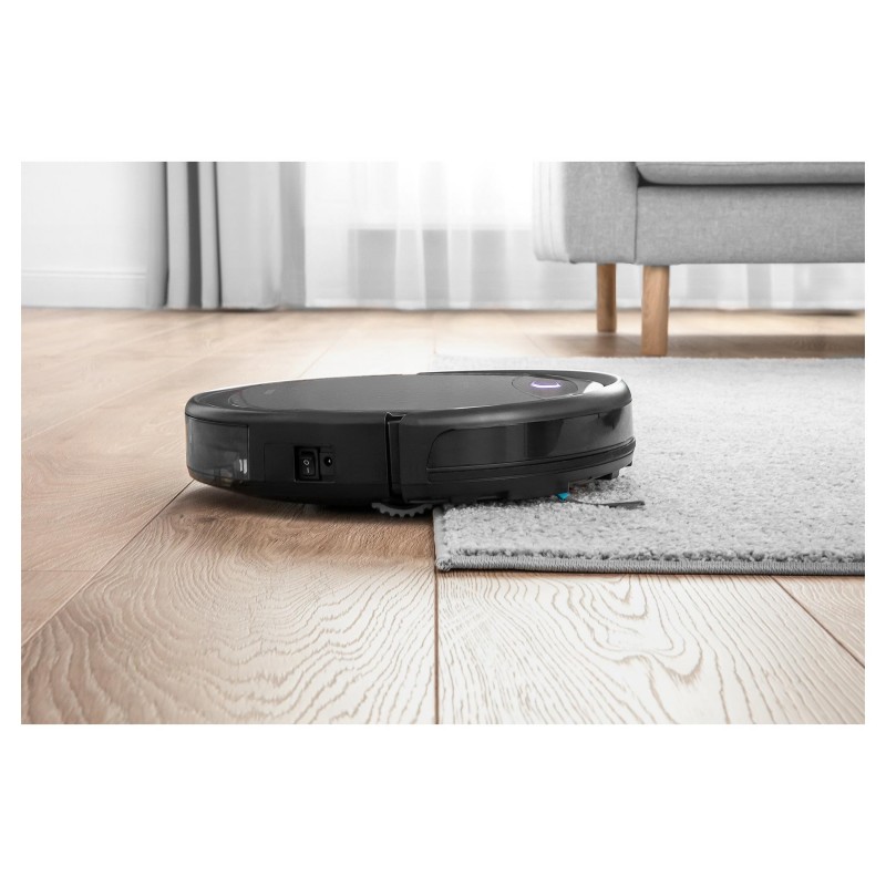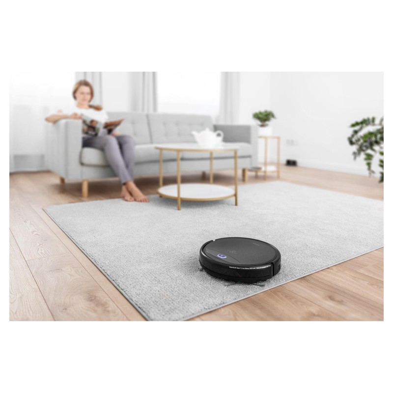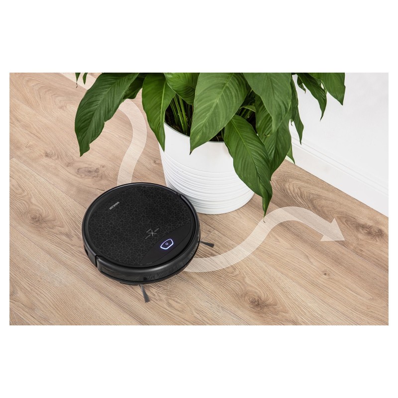 CENTRALNI SUSTAV USISAVAČA S DVIJE ROTACIJSKE ČETKICE: snažan središnji usisavač s kombiniranom rotacijskom četkom je također idealan za usisavanje tepiha i tvrdih podova rotacijske bočne četkice za savršeno čišćenje kutova ŠIROK RASPON SENZORA Senzor trake odbojnika za prepoznavanje zapreka Senzor za stepenice radi upotrebe bez brige u zgradama s više katova Senzor za preciznu navigaciju omogućuje automatsko vraćanje do stanice za punjenje KOMBINIRA 4 PROGRAMA RADI ČIŠĆENJA MAKSIMALNE POVRŠINE: duž zida (kretanje duž zida) točkasto (čišćenje na mjestu za površinu od 2 m2) nasumično (kretanje u nasumičnim smjerovima) Linearno (cik-cak) PODESIVE POSTAVE MJERAČA VREMENA (AUTOMATSKI POČETAK ČIŠĆENJA NA ZADANI DAN, SAT I MINUTU): samo jedan dan tjedno više dana tjedno samo radnim danima samo vikendima Spremnik za suho usisavanja – 475 ml prašine Vrijeme rada do 120 minuta po jednom punjenju Daljinsko upravljanja putem zasebnog daljinskog upravljača Daljinsko upravljanje putem WiFi aplikacije za mobilni telefon Stanica za punjenje s mogućnošću montiranja na zid ili namještaj Automatski povratak do stanice za punjenje nakon dovršetka programa Automatski povratak do stanice za punjenje kada baterija postane slaba Automatsko isključivanje ako se kotači zaglave Može prelaziti preko pragova visine do 1,5 cm Automatsko praćenje servisa s prikazom poruka upozorenja na zaslonu daljinskog upravljača Svjetlo indikatora statusa na kućištu usisavača (stanje mirovanja, punjenje, napunjen do kraja) Baterija: 2.600 mAh, litij-ionska (potpuno punjenje nakon približno 5 sati) Razina buke: < 60 dB Wifi 2,4 GHz