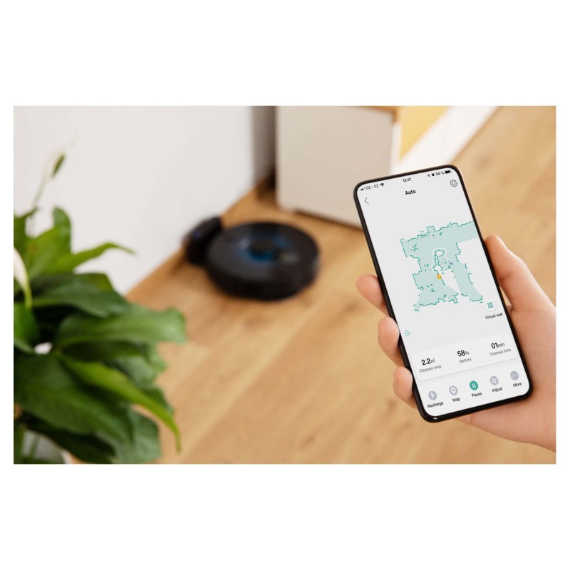 ROBOTSKI USISIVAČ SENCOR SRV 9550 BK LASER WIFI • Ciklonski sustav filtracije “SUPER CYCLONE” s usisnom snagom od 8000 Pa • Precizna laserska navigacija /LIDAR/ • Vrhunska 6400 mAh jaka Li-Ion LG baterija za do 200 minuta čišćenja • Učinkovito aktivno brisanje tijekom usisavanja • Karta za do 5 različitih katova zahvaljujući funkciji multi-mappinga • Mogućnost postavljanja optimalnog čišćenja za svaku sobu posebno zahvaljujući funkciji više soba • 4 načina čišćenja / čišćenje definiranog područja jednom ili dvaput, samo uz zidove ili samo zaprljano mjesto • Neograničeno područje čišćenja zahvaljujući sofisticiranom laserskom mapiranju • Wi-Fi 2,4 GHz / 5 GHz Idealno za čišćenje tepiha, plutajućih podova, parketa, linoleuma, podnih pločica itd. Infracrveni prednji senzor protiv udara 65W BLDC motor /bez ugljika istosmjerna struja/ osigurava veliku snagu, tih rad i dug životni vijek SENCOR NAV. 18.0 SUSTAV VOĐENJA Navođenje i orijentacija u prostoru omogućena laserskim sustavom LIDAR, žiroskopom, infracrvenim senzorima, te detekcijom stepenica i drugim senzorima prepreka. Neograničeno područje čišćenja zahvaljujući Lidaru i snažnoj bateriji Sustav aktivnog mapiranja prostora sa pohranom do 5 različitih katova kuće Mogućnost postavljanja optimalnog čišćenja za svaku sobu u kući Intuitivno podešavanje zabranjenih zona čišćenja FUNKCIJA “MOP”. Opcija mokrog brisanja tijekom usisavanja Protok vode kontroliran pomoću elektroničke pumpe Jedinstveni pokret brisanja u obliku slova Y simulira klasično brisanje ruku Spremnik za vodu i krpe za brisanje uključeni VAKUUMSKI SUSTAV S TRI ROTACIONE ČETKE Izvrsna učinkovitost sakupljanja prljavštine zahvaljujući usisnoj snazi ciklona od 8000 Pa Automatsko povećanje usisne snage na tepihu Snažna glavna rotirajuća četka savršena je za usisavanje tepiha i tvrdih podova Dvije vrste zamjenjive glavne četke za različite podove Rotirajuća bočna četka osigurava savršeno usisavanje u kutovima i duž zidova ŠIROK OPIS SENZORA Senzor branika za detekciju prepreka Senzor stepenica za bezbrižnu upotrebu i u višekatnicama Senzor za točnu navigaciju osigurava automatski povratak na priključnu stanicu DVA SPREMNIKA ZA PRAŠINU posuda pogodna samo za suho usisavanje – 480ml prašine kombinirana posuda za brisanje – 240 ml za prašinu i 260 ml za brisanje vode BOGATE FUNKCIJE U APLIKACIJI Izbor između do 5 različitih karata (kat kuće ili više stanova) Multi-room funkcija za imenovanje i upravljanje svakom prostorijom Pametno planiranje vremena čišćenja /jedan dan, više dana u tjednu/ Mogućnost podešavanja parametara čišćenja /usisne snage i intenziteta vlaženja krpe/ za svaku prostoriju posebno Virtualni zid za jednostavno označavanje zabranjenih zona Mogućnost programiranja čišćenja samo uz zidove i u kutovima ili samo na određenim mjestima Intenzivno čišćenje (očistite svaki prostor dvaput) Vrijeme rada do 200 minuta po jednom punjenju Automatski povratak na priključnu stanicu nakon završetka programa Automatski povratak na priključnu stanicu kada baterija oslabi Automatsko isključivanje ako se kotači blokiraju Automatsko praćenje servisnih zadataka s porukama upozorenja prikazanim na zaslonu daljinskog upravljača Indikator statusa baterije na tijelu usisavača (stand-by mod, punjenje, potpuno napunjen) Daljinsko upravljanje pomoću Wi-Fi aplikacije na vašem pametnom telefonu Priključna stanica Baterija: 6.400 mAh, Li-ion (potpuno napunjena nakon otprilike 5 sati) Može prijeći pragove vrata do visine od 1,8 cm. Razina buke: <69 dB
