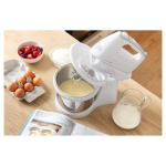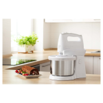 RUČNI MIKSER S ROTIRAJUĆOM ZDJELOM   5 razina brzine za sve vrste recepata Turbo tipka za maksimalnu brzinu  2 vrste privitaka: Set od 2 kom kromiranog čeličnog pribora za šlag, vrhnje, pire krumpir, namaze, bjelanjke i žumanjke Set od 2 kom kromiranih kuka za gnječenje tijesta   Gumb za ugodno otpuštanje i uklanjanje priključakaTihi radErgonomski dizajnToplinski osigurač protiv pregrijavanjaUlaz snage 500 WMaksimalna zapremina rotirajuće posude od nehrđajućeg čelika je 2,5 LDuljina kabela za napajanje: 1,2 m