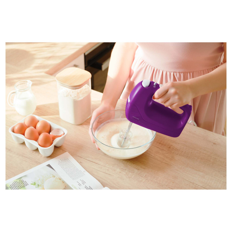 5 razina brzine za sve vrste recepataTurbo gumb za maksimalnu brzinu2 vrste priključaka:   Set pjenjača za šlag, kreme, pire krumpir, namaze, bjelanjke i žumanjke Set kuka za miješanje tijesta za gnječenje tijesta Gumb za udobno otpuštanje i uklanjanje priključaka Tihi radErgonomska ručka s gumiranom površinomJednostavno čišćenje (pjenjače i kuke mogu se oprati u perilici posuđa)Toplinski osigurač protiv ulaza za pregrijavanjeSnaga : 200 WDuljina kabela za napajanje: 1,2 m