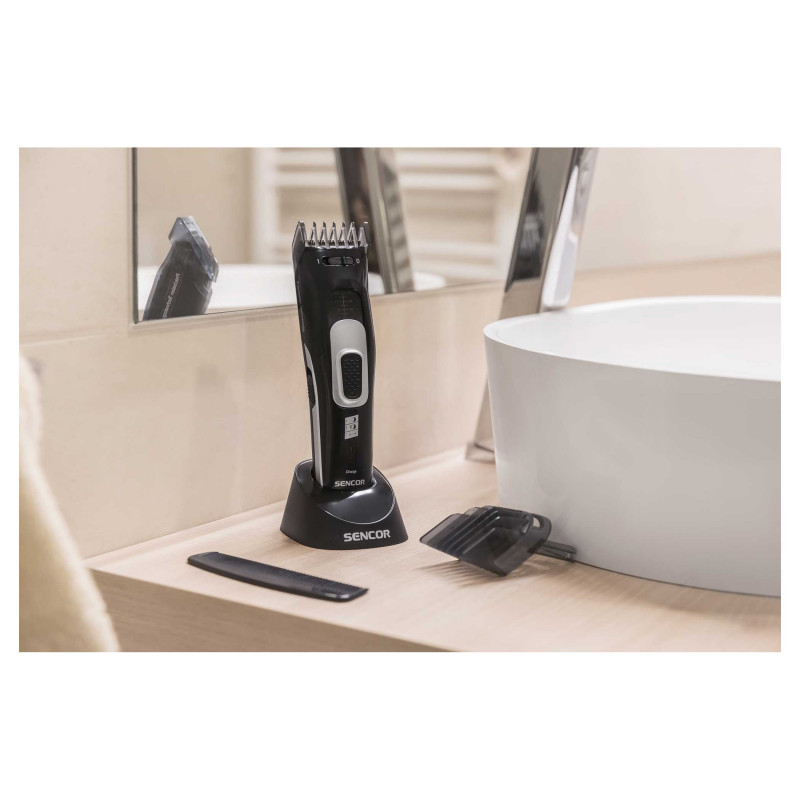 ISPROBAJTE SENCOR SHP 4501BK ŠIŠAČE ZA KOSU JAMČIM VELIKU BRIGU ZA VAŠU KOSU S DVA ZAMJENJIVA PRIKLJUČKA U potpunosti se brinem o kosi i bradama visokokvalitetnom oštricom od nehrđajućeg čelika koja se samooštri u širini od 39 mm. Izrezao sam sve vrste kose i brade s dva izmjenjiva priključka za osam odabranih duljina . Prvi priključak je kraći i može se postaviti na 3, 9, 15 i 24 mm. Drugi je znatno duži, a visina rezanja može se postaviti na 14, 20, 26 i 35 mm. Ako se koristim bez privitka,. Priključci imaju lock – up sustav pomoću kojeg se mogu lako pričvrstiti i ukloniti, kao i oštrica od nehrđajućeg čelika. Ja sam samo veliki pomagač. IMAM OPSEŽAN I PRAKTIČAN PRIBOR. Spakiraj me i povedi me sa sobom na put! Ističem se svojom malom težinom i sjajnim dimenzijama, s kojima mogu prikladno stati u bilo koju prtljagu, bilo da se radi o ruksaku ili kovčegu. Zasigurno ćete biti oduševljeni mojom opremom, koja je praktična i dobro vam dođe kod kuće i na odmoru. FUNKCIJE I SVOJSTVA Mrežna mreža /baterijaIzmjenjivi priključak za visinu izmjenjivog za jednostavno čišćenjeErgonomska ručka koja sprječava klizanje u ruciVrijeme rada baterije 40 minutaŠirina noža 39 mmprekidač za UKLJUČIVANJE / ISKLJUČIVANJE (uključivanje / isključivanje)Opcija podrezivanja bez priključkačešlja 2 priključka češlja s jedinstvenim sustavomzaključavanje Kratki priključak duljine 3, 9, 15 i 24 mmDugi priključak duljine 14, 20, 26 i 35 mmIndikator grafičke duljine rezanja LED indikatorpunjenja Isporučeni pribor: praktični stalak, punjač / adapter za napajanje, 2 priključka češlja, četka za čišćenje, ulje za jedinicuza šišanje Težina: 140gDimenzije (širina × dubina × visina): 47 × 37 × 185 mm