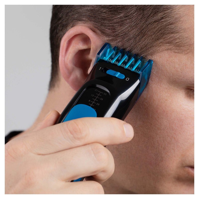 Izvor napajanja: mrežno/baterijaUklonjivi nastavak za podešavanje dužine kose koji se lako čistiErgonomična ručka sprječava proklizavanje u ruciVrijeme rada na bateriju 40 minutaŠirina oštrice 39 mmPrekidač ON/OFF (uključivanje/isključivanje)Mogućnost podrezivanja bez nastavka za češljanje2 nastavka za češljanje s jedinstvenim sustavom zaključavanjaKratki nastavak s duljinama od 3, 9, 15 i 24 mmDugi nastavak s duljinama od 14, 20, 26 i 35 mmIndikator rezne dužineLED indikator punjenjaKapacitet baterije 650 mAhPriloženi pribor: praktično postolje, punjač/adapter napajanja, 2 nastavka za češljanje, četkica za čišćenje, ulje za šišačMasa: 140 gDimenzije (širina × dubina × visina): 47 × 37 × 185 mm